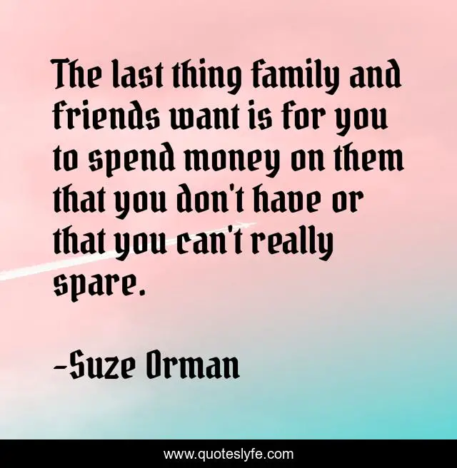 This page presents the quote "The last thing family and friends want is for you to spend money on them that you don't have or that you can't really spare.". Author of this quote is Suze Orman. This quote is about money, friends,.