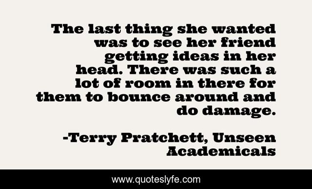 "Terry Pratchett, Unseen Academicals Quotes." Quoteslyfe.com, 2025. Mon. 08 Dec. 2025. <https://www.quoteslyfe.com/quote/The-last-thing-she-wanted-was-to-205168>.