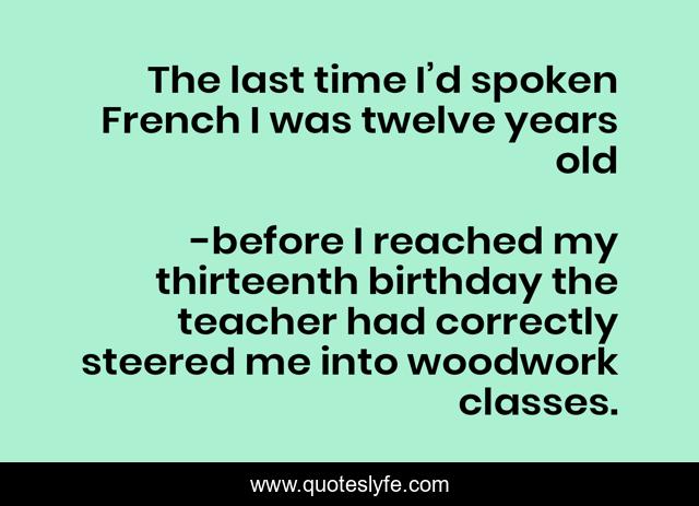 "before I reached my thirteenth birthday the teacher had correctly steered me into woodwork classes. Quotes." Quoteslyfe.com, 2025. Fri. 05 Dec. 2025. <https://www.quoteslyfe.com/quote/The-last-time-I-d-spoken-French-137087>.