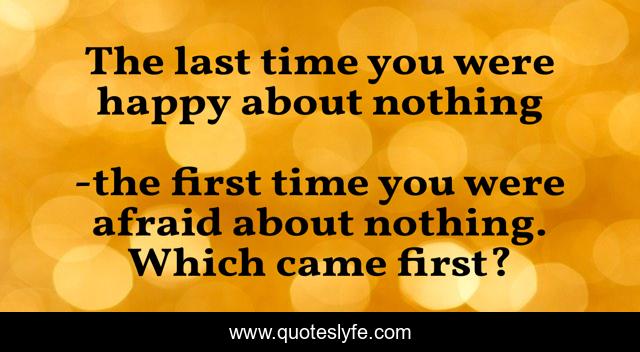 "the first time you were afraid about nothing. Which came first? Quotes." Quoteslyfe.com, 2025. Tue. 09 Dec. 2025. <https://www.quoteslyfe.com/quote/The-last-time-you-were-happy-about-190824>.