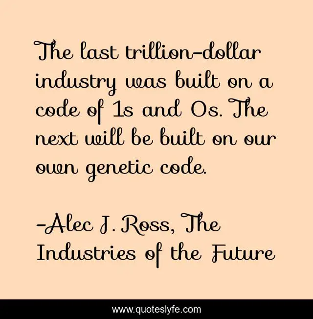 This page presents the quote "The last trillion-dollar industry was built on a code of 1s and 0s. The next will be built on our own genetic code.". Author of this quote is Alec J. Ross, The Industries of the Future. This quote is about future, technology, idea, business,.