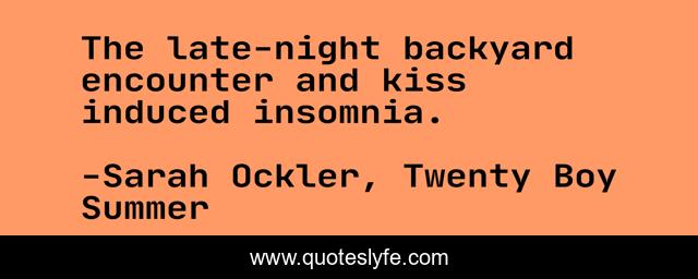 This page presents the quote "The late-night backyard encounter and kiss induced insomnia.". Author of this quote is Sarah Ockler, Twenty Boy Summer. This quote is about love, kiss, affection,.