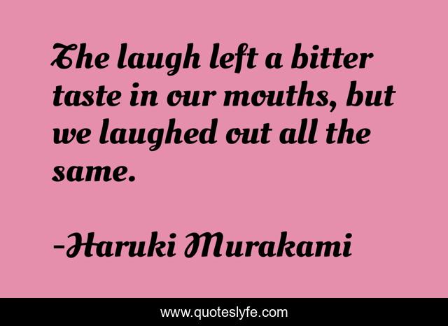 "Haruki Murakami Quotes." Quoteslyfe.com, 2025. Mon. 08 Dec. 2025. <https://www.quoteslyfe.com/quote/The-laugh-left-a-bitter-taste-in-102761>.