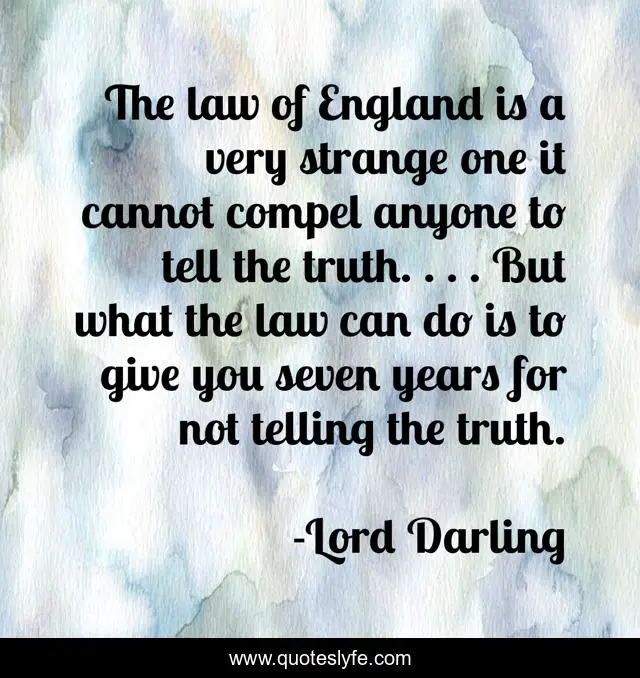 This page presents the quote "The law of England is a very strange one it cannot compel anyone to tell the truth. . . . But what the law can do is to give you seven years for not telling the truth.". Author of this quote is Lord Darling. This quote is about law, lawyers,.