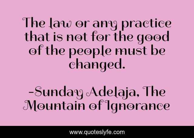 This page presents the quote "The law or any practice that is not for the good of the people must be changed.". Author of this quote is Sunday Adelaja, The Mountain of Ignorance. This quote is about mountain, life, darkness, power, danger, destruction, god, practice, people,.