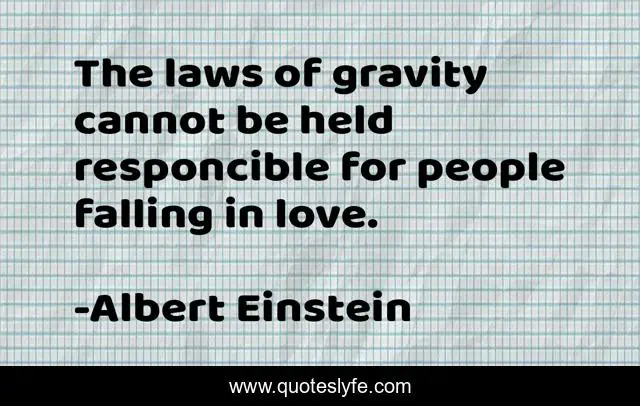 This page presents the quote "The laws of gravity cannot be held responcible for people falling in love.". Author of this quote is Albert Einstein. This quote is about science, love, affection,.