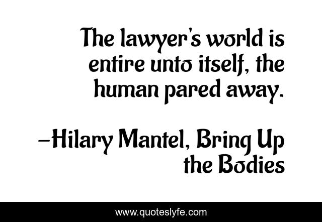 This page presents the quote "The lawyer's world is entire unto itself, the human pared away.". Author of this quote is Hilary Mantel, Bring Up the Bodies. This quote is about law, lawyers,.