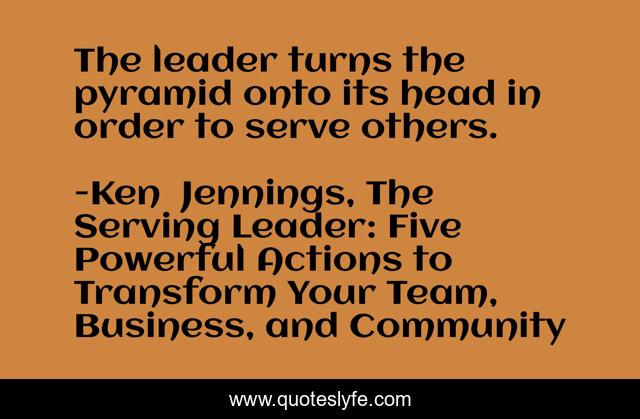 This page presents the quote "The leader turns the pyramid onto its head in order to serve others.". Author of this quote is Ken Jennings, The Serving Leader: Five Powerful Actions to Transform Your Team, Business, and Community. This quote is about serving-others, pyramid, serving-leader, leader,.