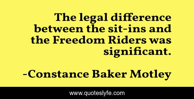 This page presents the quote "The legal difference between the sit-ins and the Freedom Riders was significant.". Author of this quote is Constance Baker Motley. This quote is about freedom, difference, between,.