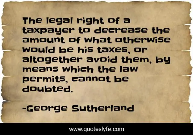 "George Sutherland Quotes." Quoteslyfe.com, 2025. Sun. 07 Dec. 2025. <https://www.quoteslyfe.com/quote/The-legal-right-of-a-taxpayer-to-329759>.