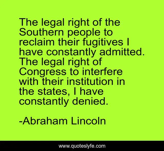 This page presents the quote "The legal right of the Southern people to reclaim their fugitives I have constantly admitted. The legal right of Congress to interfere with their institution in the states, I have constantly denied.". Author of this quote is Abraham Lincoln. This quote is about right, congress, people,.