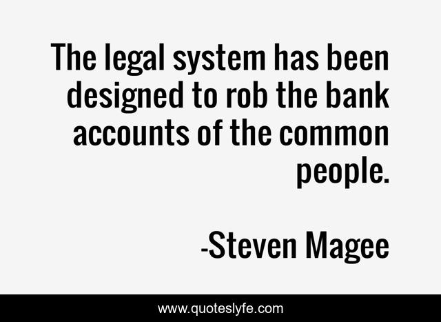 This page presents the quote "The legal system has been designed to rob the bank accounts of the common people.". Author of this quote is Steven Magee. This quote is about people, rob, system, legal, accounts, common, bank, designed,.