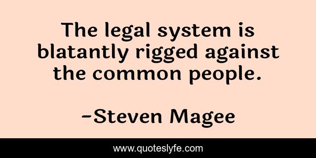 This page presents the quote "The legal system is blatantly rigged against the common people.". Author of this quote is Steven Magee. This quote is about blatantly, people, system, legal, common, rigged,.