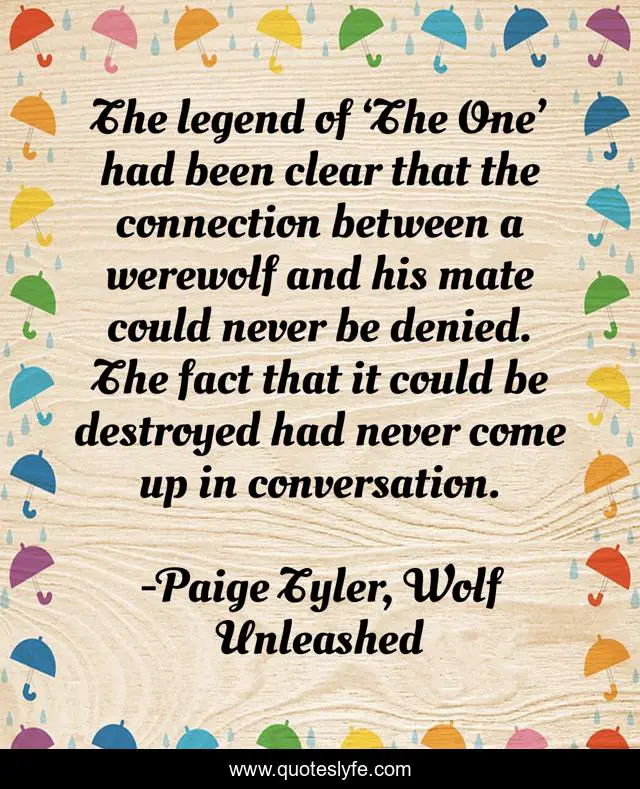 "Paige Tyler, Wolf Unleashed Quotes." Quoteslyfe.com, 2025. Sat. 06 Dec. 2025. <https://www.quoteslyfe.com/quote/The-legend-of-The-One-had-been-131801>.