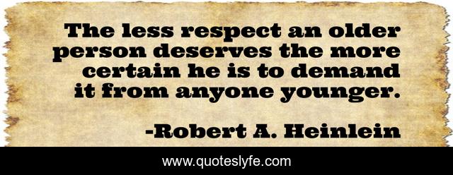 "Robert A. Heinlein Quotes." Quoteslyfe.com, 2025. Mon. 08 Dec. 2025. <https://www.quoteslyfe.com/quote/The-less-respect-an-older-person-deserves-184975>.
