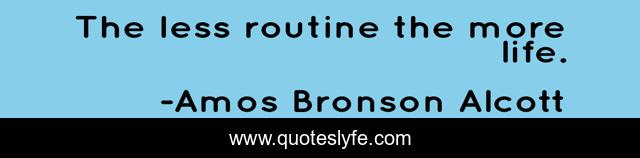 This page presents the quote "The less routine the more life.". Author of this quote is Amos Bronson Alcott. This quote is about less, routine, more,.