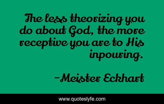 This page presents the quote "The less theorizing you do about God, the more receptive you are to His inpouring.". Author of this quote is Meister Eckhart. This quote is about mystery, revelation, theology,.