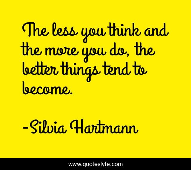 This page presents the quote "The less you think and the more you do, the better things tend to become.". Author of this quote is Silvia Hartmann. .