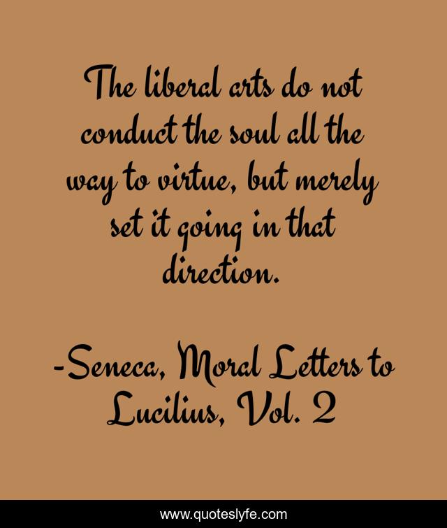 This page presents the quote "The liberal arts do not conduct the soul all the way to virtue, but merely set it going in that direction.". Author of this quote is Seneca, Moral Letters to Lucilius, Vol. 2. This quote is about virtue, liberal-arts,.