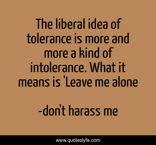This page presents the quote "The liberal idea of tolerance is more and more a kind of intolerance. What it means is 'Leave me alone". Author of this quote is don't harass me. .