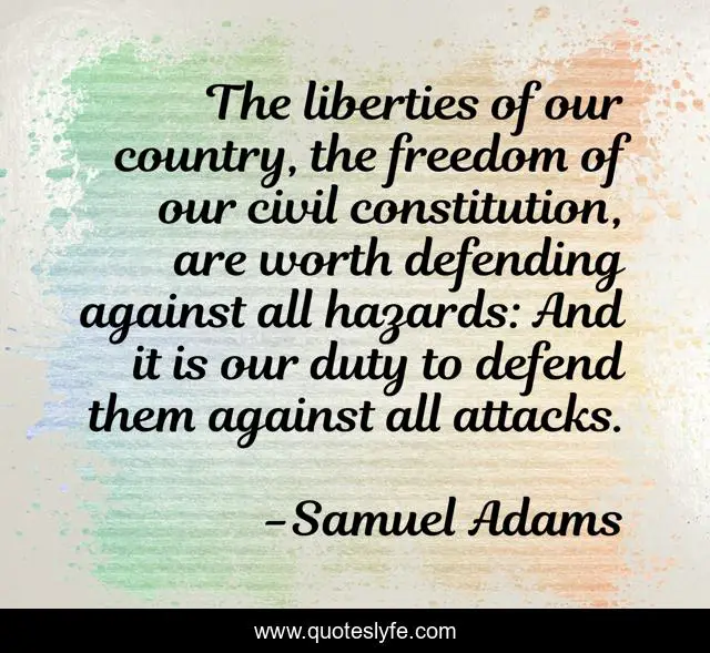 This page presents the quote "The liberties of our country, the freedom of our civil constitution, are worth defending against all hazards: And it is our duty to defend them against all attacks.". Author of this quote is Samuel Adams. This quote is about duty, country, constitution,.