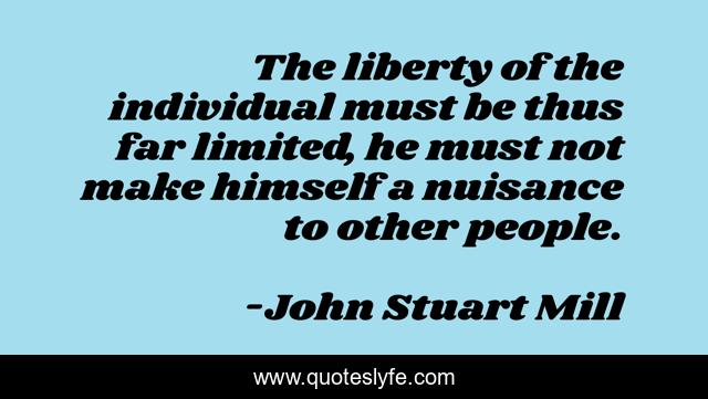 This page presents the quote "The liberty of the individual must be thus far limited, he must not make himself a nuisance to other people.". Author of this quote is John Stuart Mill. .