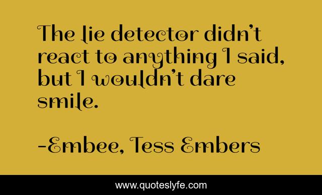 "Embee, Tess Embers Quotes." Quoteslyfe.com, 2025. Sat. 06 Dec. 2025. <https://www.quoteslyfe.com/quote/The-lie-detector-didn-t-react-to-255601>.
