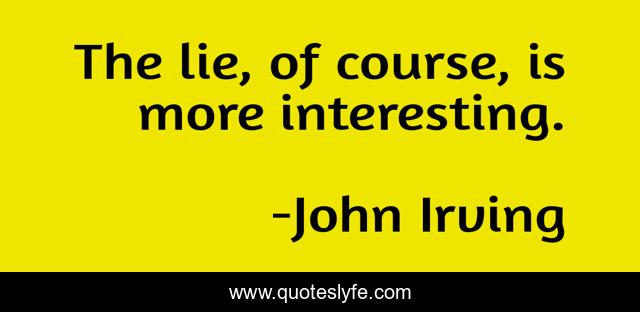 This page presents the quote "The lie, of course, is more interesting.". Author of this quote is John Irving. This quote is about interesting, lie,.