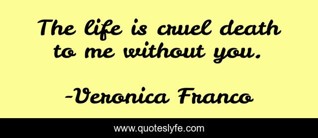 This page presents the quote "The life is cruel death to me without you.". Author of this quote is Veronica Franco. This quote is about life, death, love, abandoned, without-love, loneliness, without-you, alone, affection,.