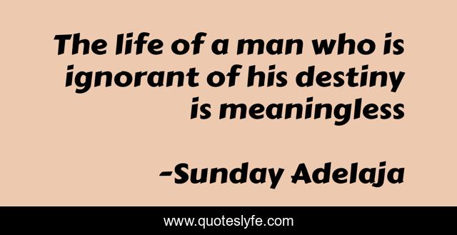This page presents the quote "The life of a man who is ignorant of his destiny is meaningless". Author of this quote is Sunday Adelaja. This quote is about life, waste, ignorance, destiny, people,.