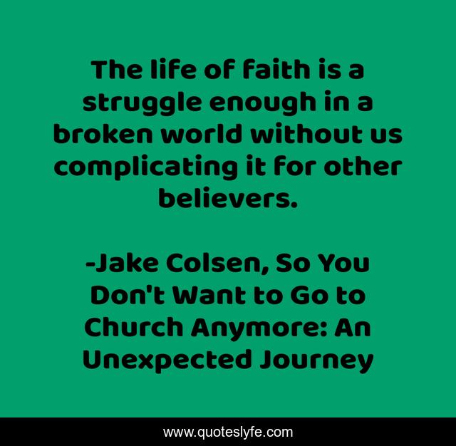 "Jake Colsen, So You Don't Want to Go to Church Anymore: An Unexpected Journey Quotes." Quoteslyfe.com, 2025. Sat. 06 Dec. 2025. <https://www.quoteslyfe.com/quote/The-life-of-faith-is-a-struggle-225965>.