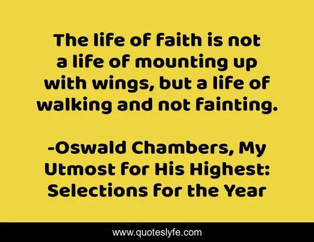 This page presents the quote "The life of faith is not a life of mounting up with wings, but a life of walking and not fainting.". Author of this quote is Oswald Chambers, My Utmost for His Highest: Selections for the Year. .
