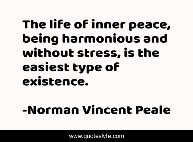 This page presents the quote "The life of inner peace, being harmonious and without stress, is the easiest type of existence.". Author of this quote is Norman Vincent Peale. This quote is about existence, life, stress,.