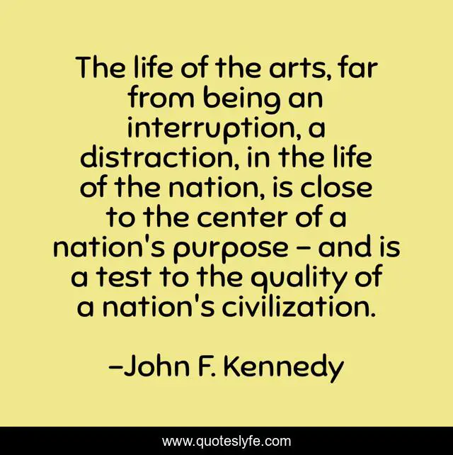 The life of the arts, far from being an interruption, a distraction, in the life of the nation, is close to the center of a nation's purpose - and is a test to the quality of a nation's civilization.