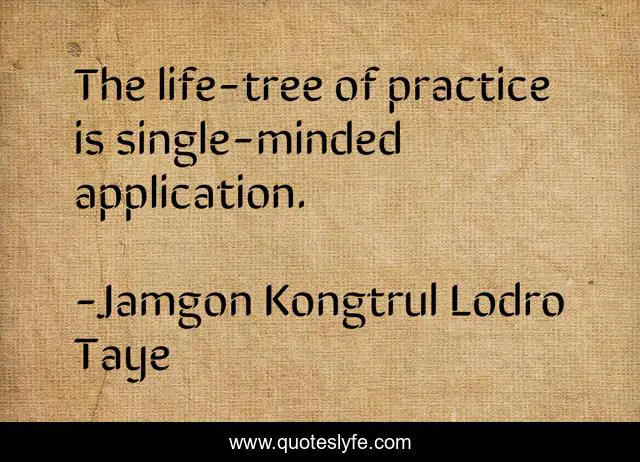This page presents the quote "The life-tree of practice is single-minded application.". Author of this quote is Jamgon Kongtrul Lodro Taye. This quote is about buddhism, practice, tibetan-buddhism, practice-makes-perfect,.