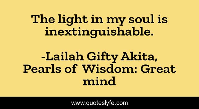 "Lailah Gifty Akita, Pearls of Wisdom: Great mind Quotes." Quoteslyfe.com, 2025. Tue. 09 Dec. 2025. <https://www.quoteslyfe.com/quote/The-light-in-my-soul-is-inextinguishable-63647>.