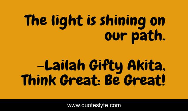 "Lailah Gifty Akita, Think Great: Be Great! Quotes." Quoteslyfe.com, 2025. Sun. 14 Dec. 2025. <https://www.quoteslyfe.com/quote/The-light-is-shining-on-our-path-95094>.