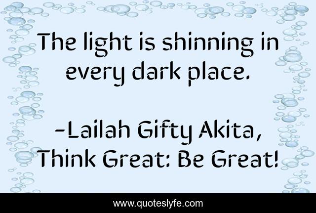 "Lailah Gifty Akita, Think Great: Be Great! Quotes." Quoteslyfe.com, 2025. Fri. 05 Dec. 2025. <https://www.quoteslyfe.com/quote/The-light-is-shinning-in-every-dark-62512>.