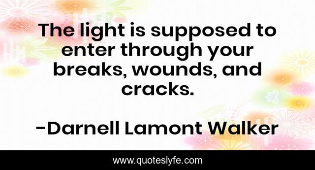 This page presents the quote "The light is supposed to enter through your breaks, wounds, and cracks.". Author of this quote is Darnell Lamont Walker. This quote is about light, suffering, enlightenment, pain, wounds,.
