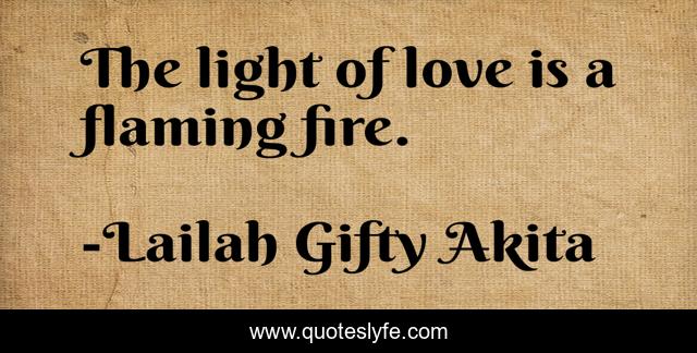 This page presents the quote "The light of love is a flaming fire.". Author of this quote is Lailah Gifty Akita. This quote is about love, fire, light, inspirational, enthusiasm, affection,.