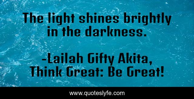 "Lailah Gifty Akita, Think Great: Be Great! Quotes." Quoteslyfe.com, 2025. Mon. 08 Dec. 2025. <https://www.quoteslyfe.com/quote/The-light-shines-brightly-in-the-darkness-62498>.