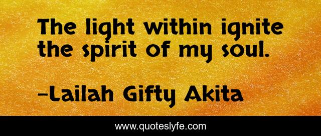 This page presents the quote "The light within ignite the spirit of my soul.". Author of this quote is Lailah Gifty Akita. This quote is about spiritual, lailah-gifty-akita-affirmations, shine-your-light, light, soul, divine-grace,.