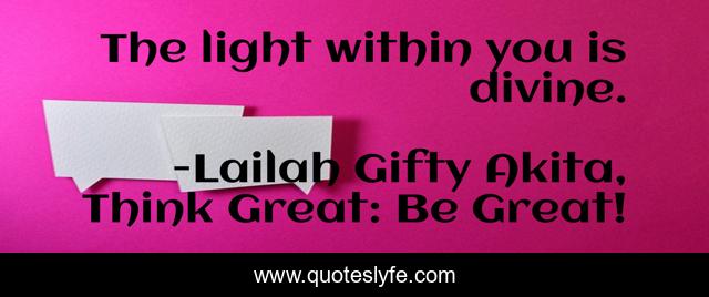 "Lailah Gifty Akita, Think Great: Be Great! Quotes." Quoteslyfe.com, 2025. Sat. 06 Dec. 2025. <https://www.quoteslyfe.com/quote/The-light-within-you-is-divine-118773>.