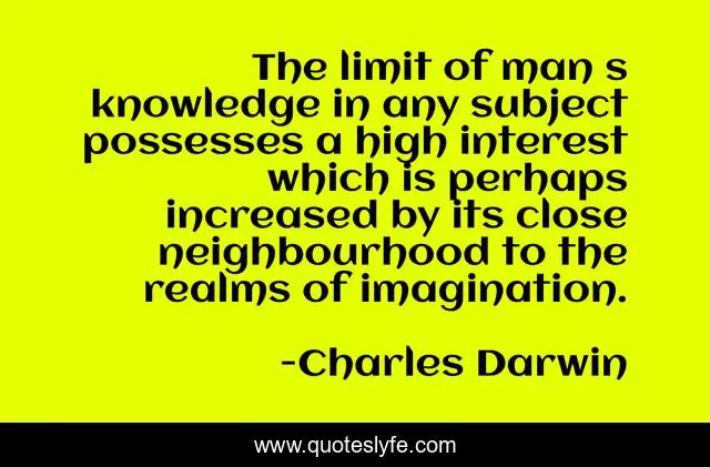 This page presents the quote "The limit of man s knowledge in any subject possesses a high interest which is perhaps increased by its close neighbourhood to the realms of imagination.". Author of this quote is Charles Darwin. This quote is about religion, skepticism, science,.