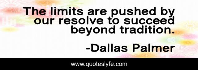 This page presents the quote "The limits are pushed by our resolve to succeed beyond tradition.". Author of this quote is Dallas Palmer. This quote is about success, inspiration,.