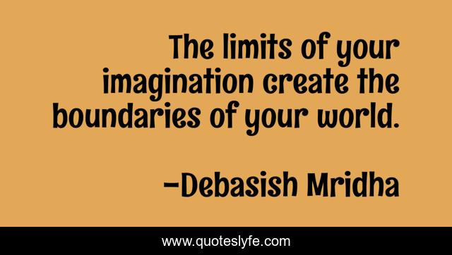 This page presents the quote "The limits of your imagination create the boundaries of your world.". Author of this quote is Debasish Mridha. This quote is about imagination, philosophy, debasish-mridha, limits-of-your-imagination, quotes, inspirational, enthusiasm, debasish-mridha-m-d, boundaries-of-your-world,.