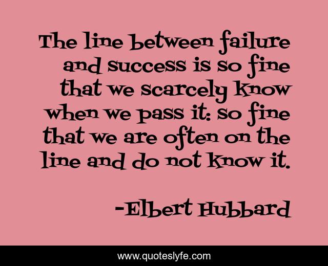 This page presents the quote "The line between failure and success is so fine that we scarcely know when we pass it: so fine that we are often on the line and do not know it.". Author of this quote is Elbert Hubbard. This quote is about fine, success,.