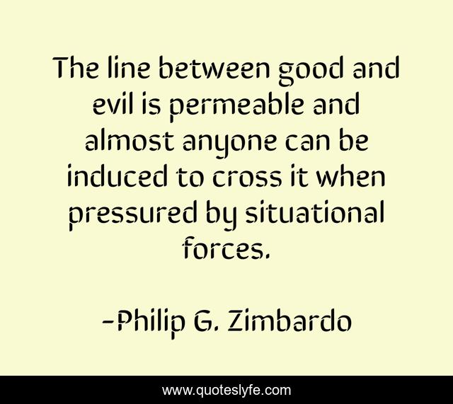 "Philip G. Zimbardo Quotes." Quoteslyfe.com, 2025. Fri. 05 Dec. 2025. <https://www.quoteslyfe.com/quote/The-line-between-good-and-evil-is-255046>.
