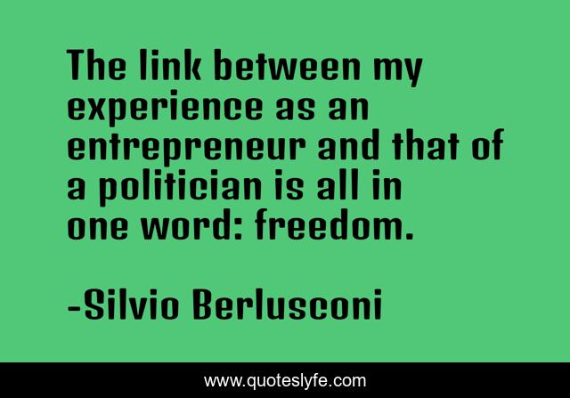 This page presents the quote "The link between my experience as an entrepreneur and that of a politician is all in one word: freedom.". Author of this quote is Silvio Berlusconi. This quote is about one word, experience,.