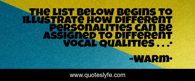 This page presents the quote "The list below begins to illustrate how different personalities can be assigned to different vocal qualities . . .•". Author of this quote is Warm•. .